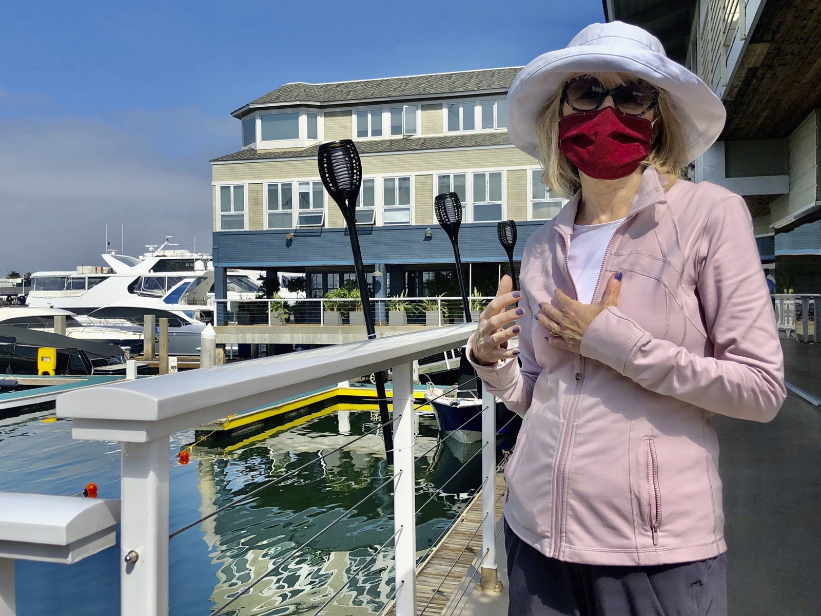 Lynn Lorenz, a retired teacher who lives on a bluff above the Newport Beach harbor, emerged from her home Thursday morning wearing a mask.