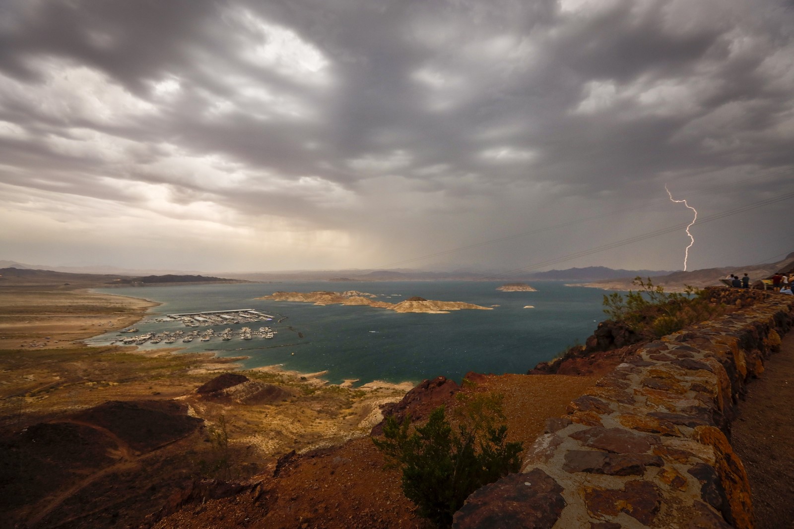 Lake Mead was formed by building Hoover Dam in the 1930s. It is one of several man-made reservoirs that store water from the Colorado River, which supplies household water, irrigation for farms and hydropower to Arizona, California, Colorado, Nevada, New Mexico, Utah, Wyoming and parts of Mexico.