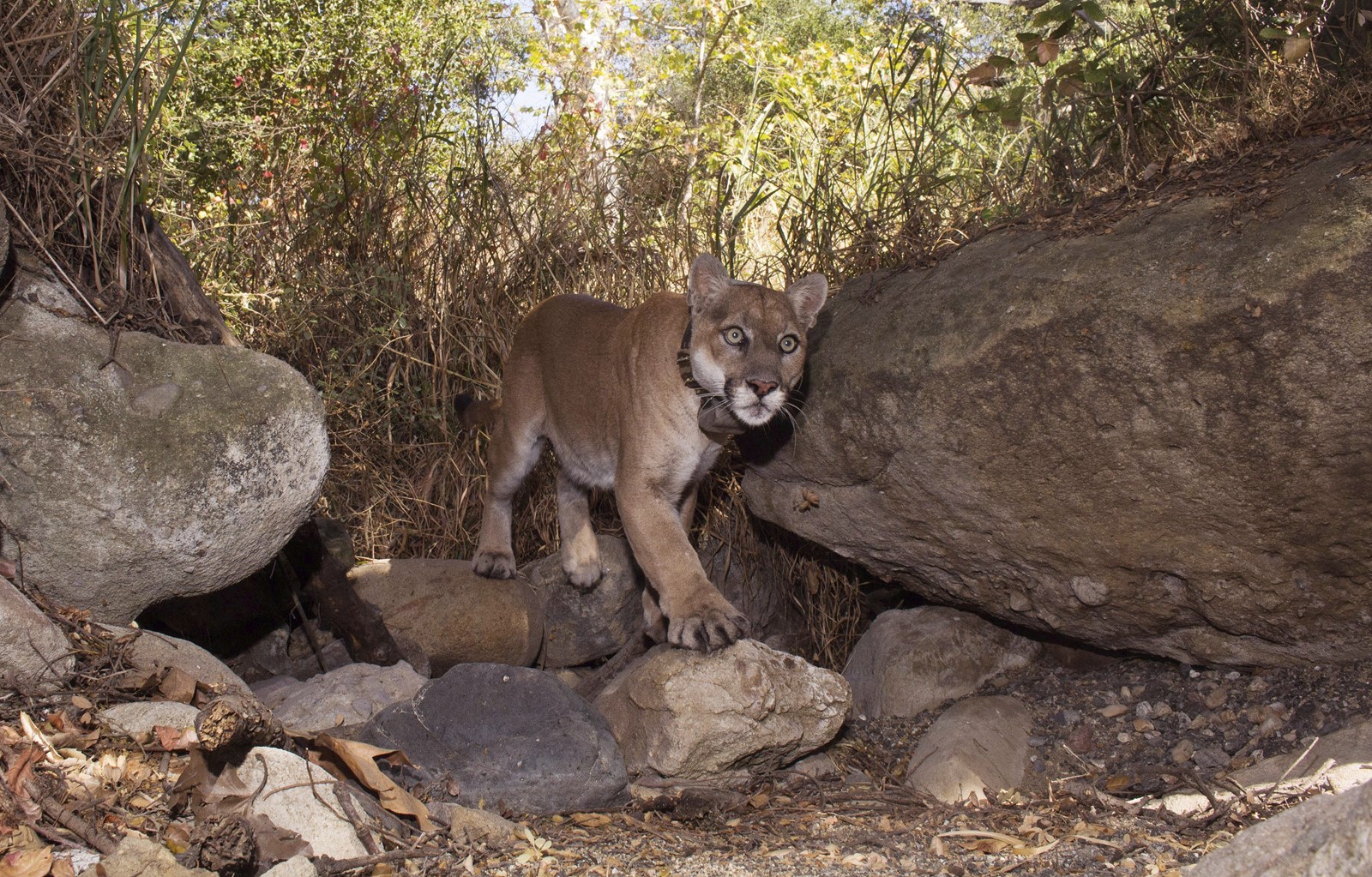 “I’d still be fundraising if it weren’t for P-22’s story,” says Beth Pratt, California regional executive director of the National Wildlife Federation who helped raise millions for the Wallis Annenberg Wildlife Crossing over the 101 Freeway in Agoura Hills. P-22’s bout with mange in 2014 — which he recovered from after National Park Service biologists tranquilized and treated him — and the photo snapped of him looking ill publicized the danger of widespread rodenticide use. Predators such as lions are sickened when they ingest smaller animals poisoned by rodenticides.