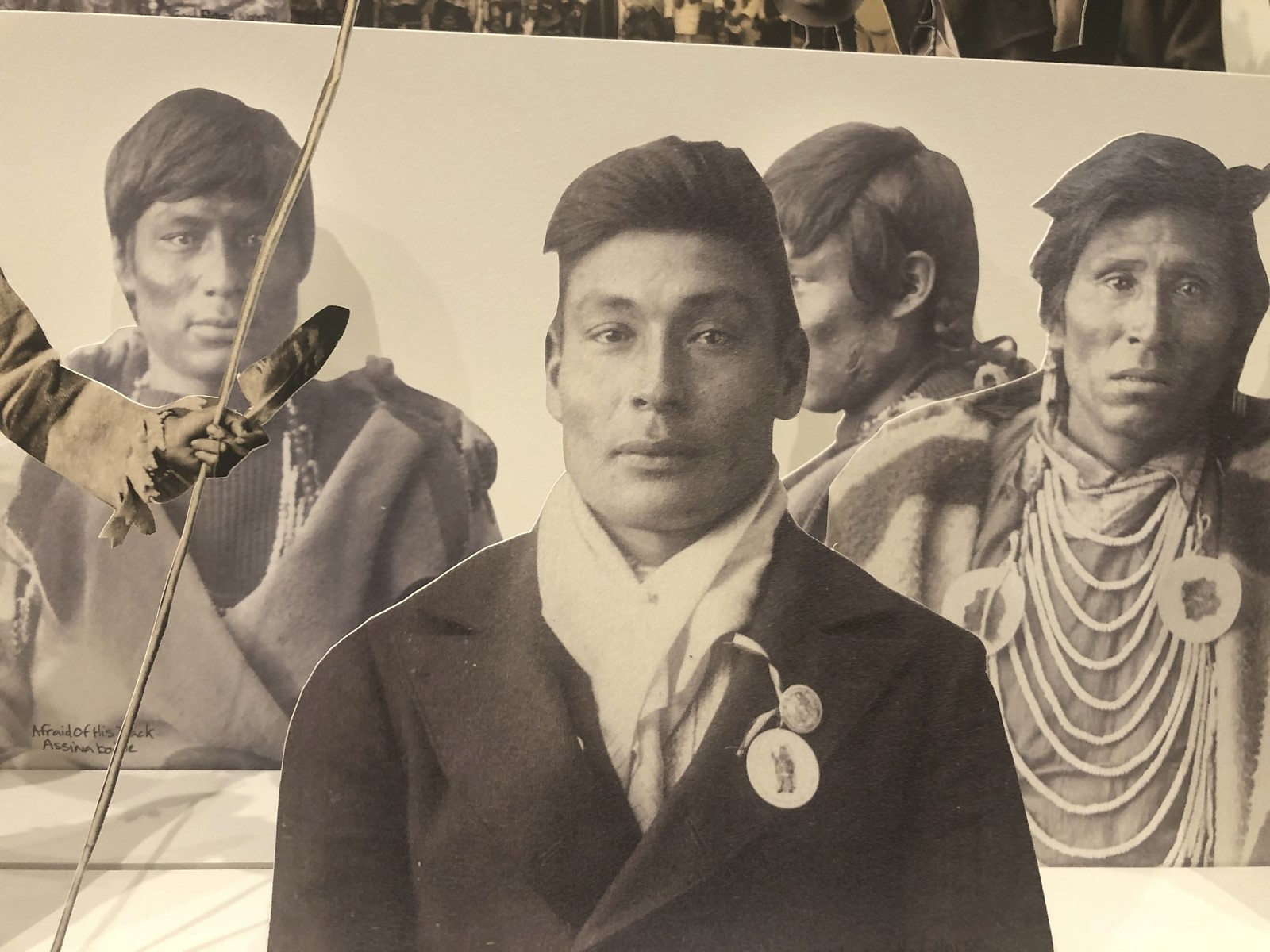 “The Indian Congress,” as Red Star’s piece is titled, is a stunner. It highlights the ways in which Native people have been put on display — in fairs, in museums, in photographs — while also subverting that very idea. The artist takes images of Indigenous figures made for the gaze of white society and reappropriates them, giving them literal dimension on the stepped platforms.