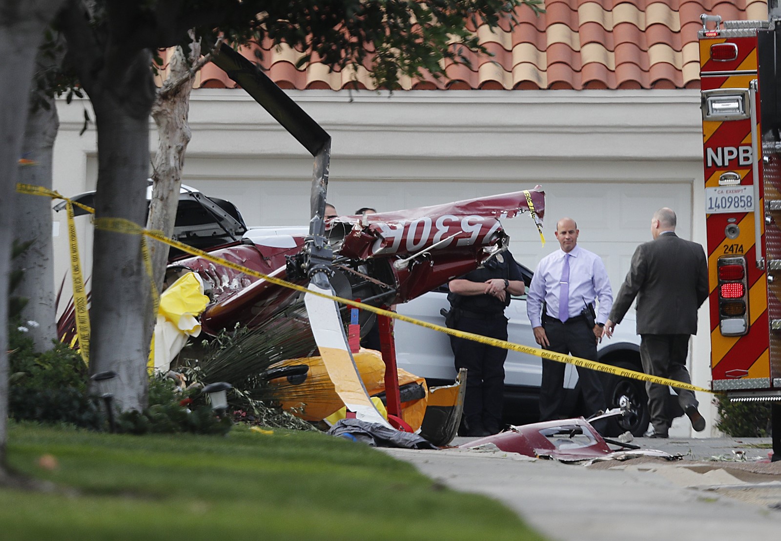 The four-seat helicopter had barely lifted off from John Wayne Airport when it nosed down, clipped two houses and slammed into a third, killing the pilot and two of his three passengers.