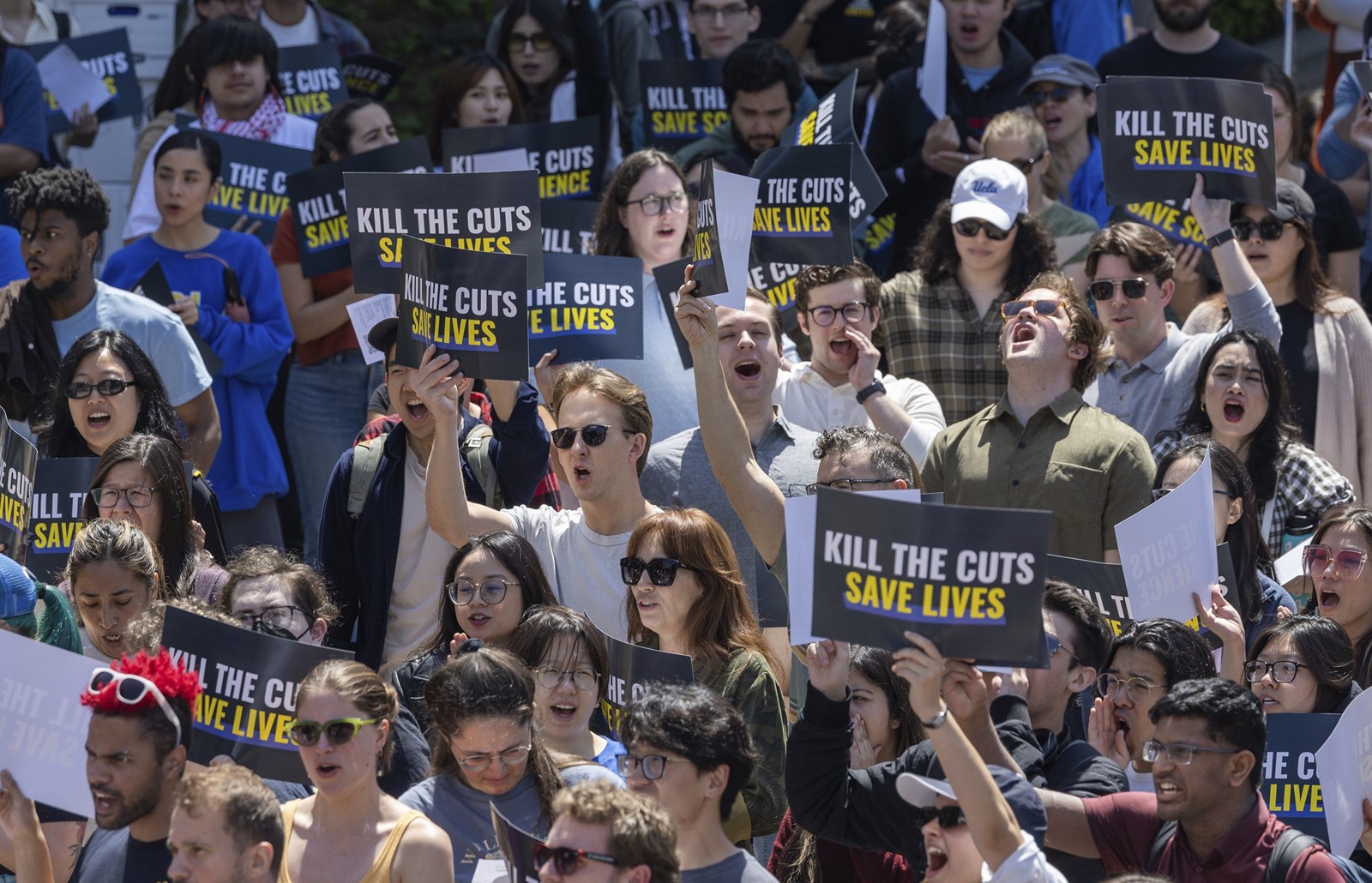 The “Kill the Cuts” gatherings, organized by a coalition of labor unions, unfolded at 37 sites across the country. They were meant to draw attention to President Trump’s decision to halt billions of dollars in funding from the NIH. As with other institutions of higher education, the University of California has relied on these and other federal funds to power research on cancer, diabetes and many other diseases.