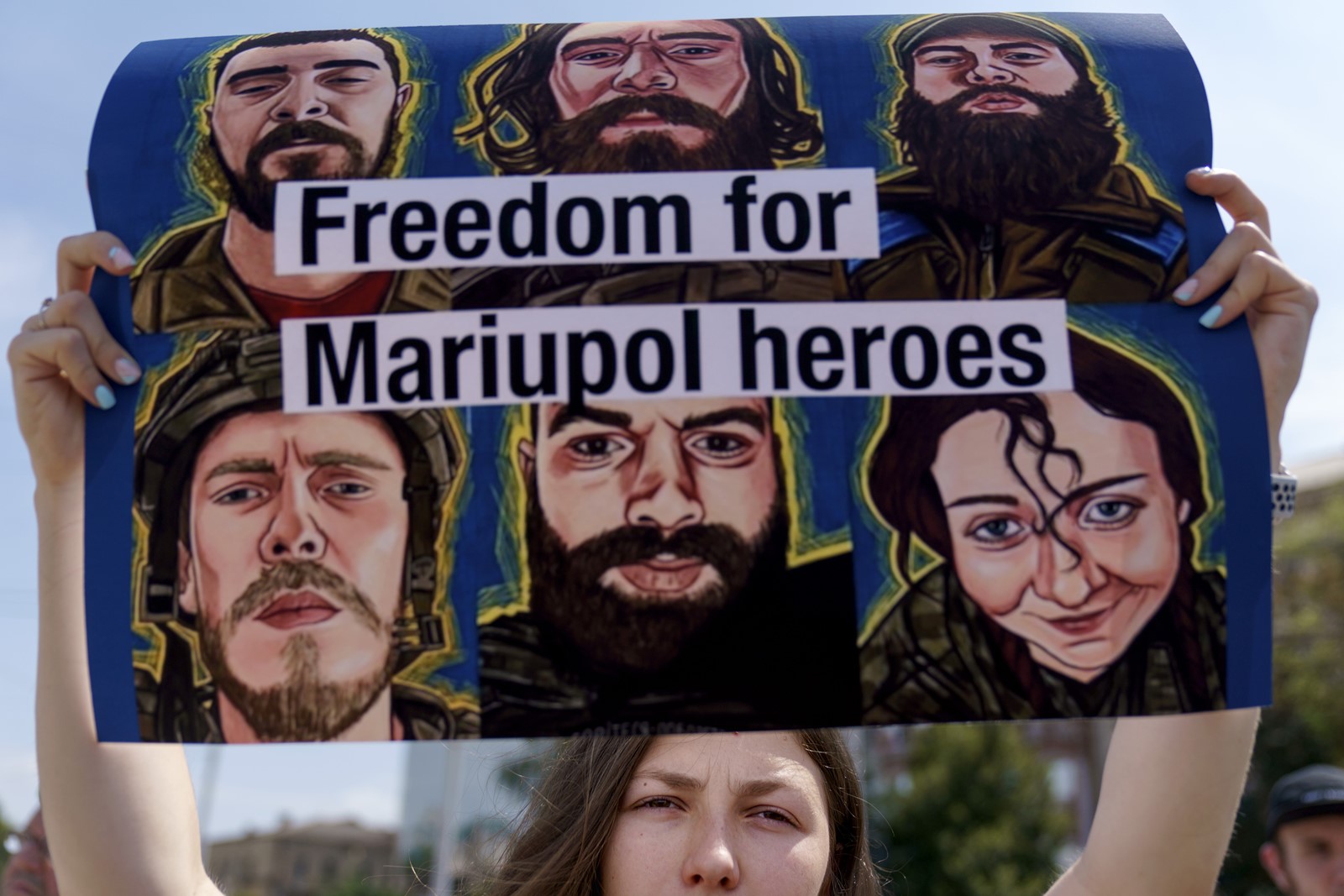 On Saturday, an association of Azov fighters’ relatives dressed in black held a demonstration outside Kyiv’s St. Sophia Cathedral and issued a statement calling for Russia to be designated a terrorist state, alleging it has violated the Geneva Convention’s rules for the treatment of war prisoners.