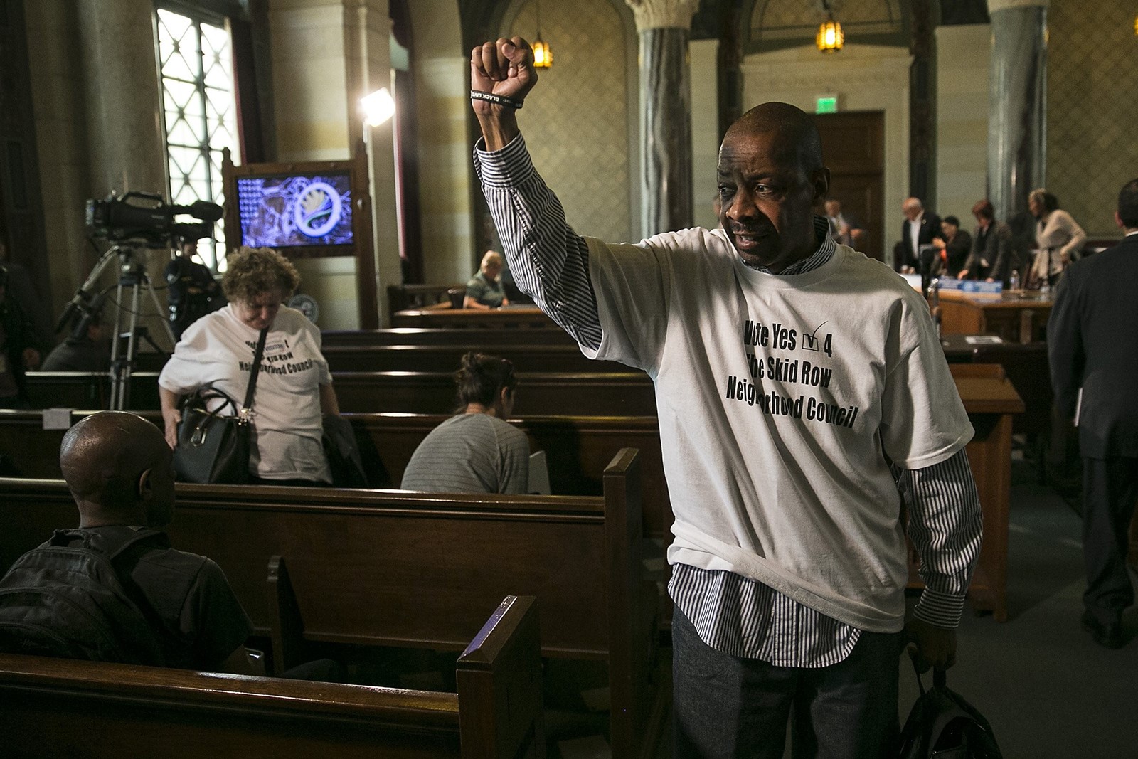 General Dogon, an organizer with the Los Angeles Community Action Network, a skid row advocacy group, was one of dozens of people who attended Tuesday’s meeting — another “save the homeless” meeting, he quipped. Dogon said he thought the LAPD downplayed how much of an effect enforcement has on the city’s homeless residents.