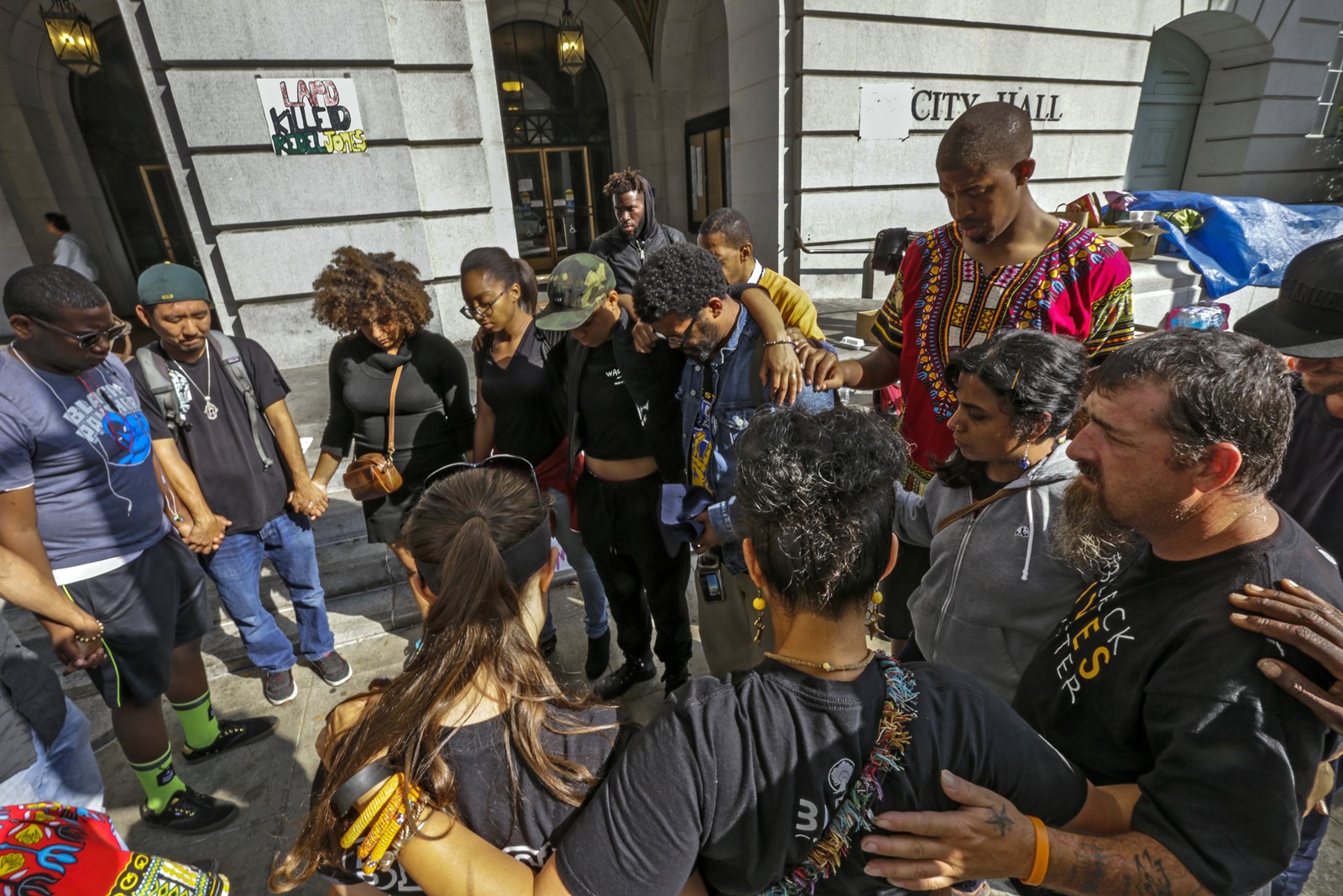 When members of the Police Commission determined last summer that the shooting fell within the Los Angeles Police Department’s policy for using deadly force, activists and others marched in protest from police headquarters to City Hall. They camped there for more than a month, holding signs and circulating a petition demanding that Mayor Eric Garcetti fire LAPD Chief Charlie Beck.