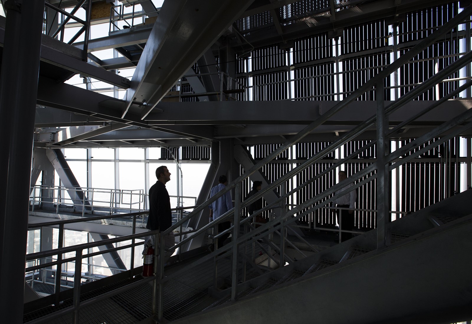 At the Wilshire Grand and slightly closer to the ground, Gwinn and Hart wandered through the tower’s halls with the building’s senior designer, Tammy Jow. They reminisced about fighting over elevators and marveled that the air conditioning had been turned on.