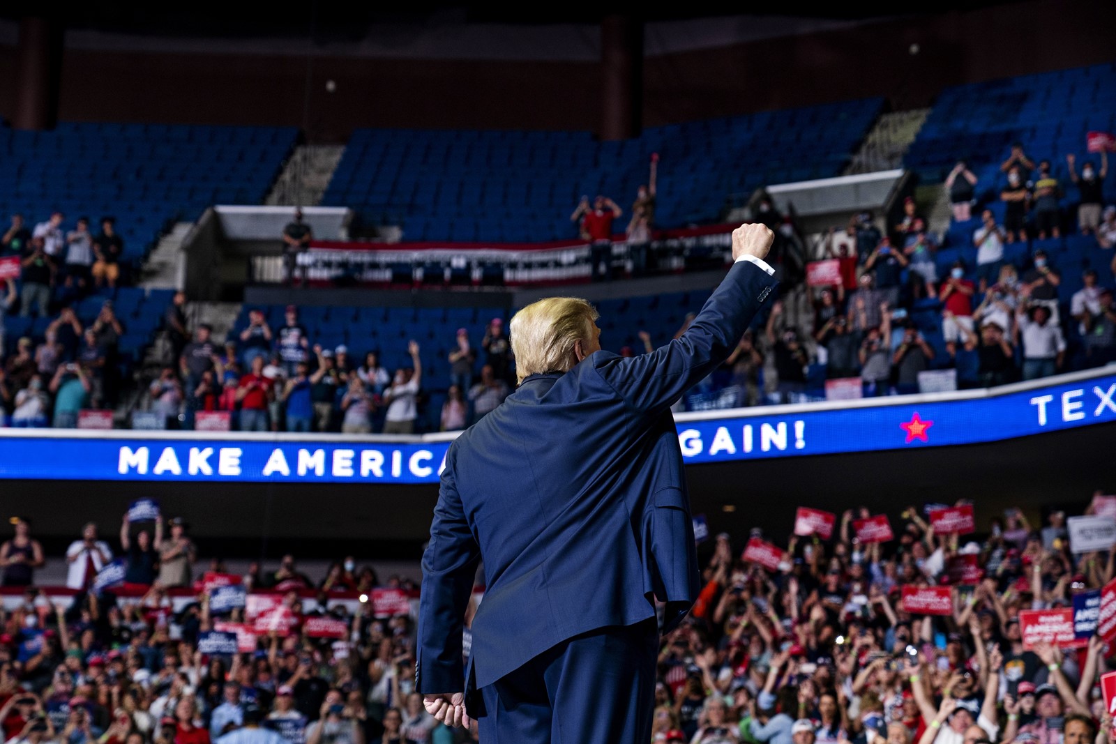 Although some hardcore supporters camped out for days, there were empty seats throughout the upper decks of Tulsa’s downtown arena when Trump took the stage, a sharp blow to a president who is counting on faithful audiences to buoy his sagging reelection chances.