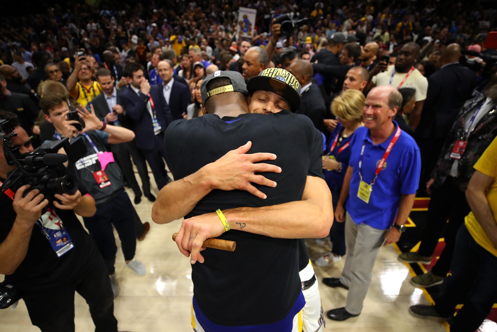 When the Warriors’ championship celebration ended, Curry walked through a crowd of Golden State supporters and into a tunnel that led him away from the court. In his arms he cradled the only thing that matters to him in his basketball career, then he lifted the Larry O’Brien Championship Trophy high into the air.