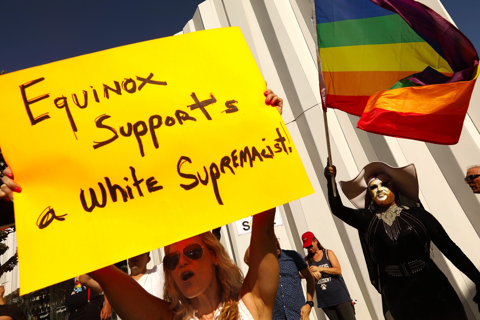 In West Hollywood, protesters noticed Equinox members peering out at them from the second-story window and beckoned for them to come down and join their effort.
