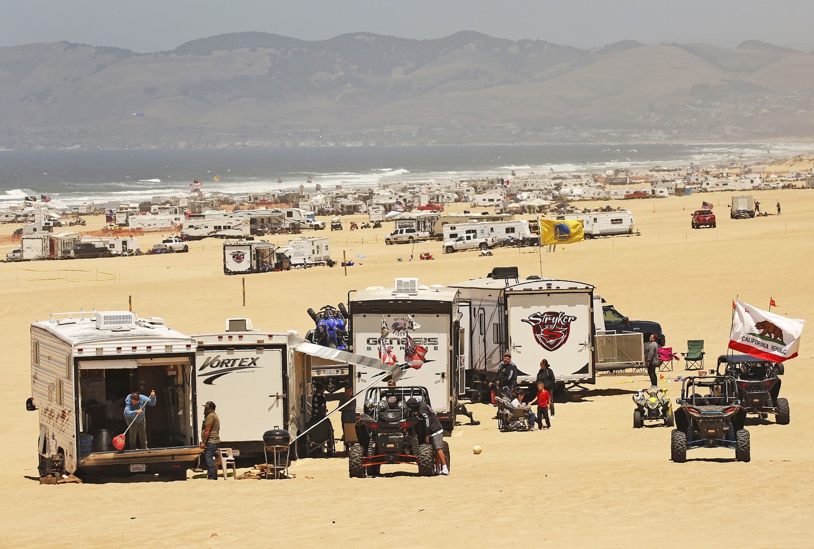 Wrong. We are in San Luis Obispo County, just south of Pismo Beach, home to a decades-long tradition of sand buggies carving up the magnificent dunes and RVs driving onto the glorious beach.