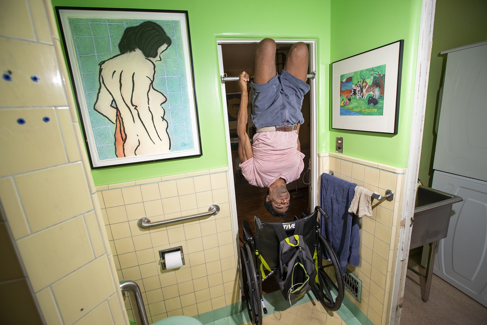 In his wheelchair, as he talks of his many plans for a rich future, he pushes up on the armrests and lifts his body shoulder height into the air, and it’s breathtaking.
