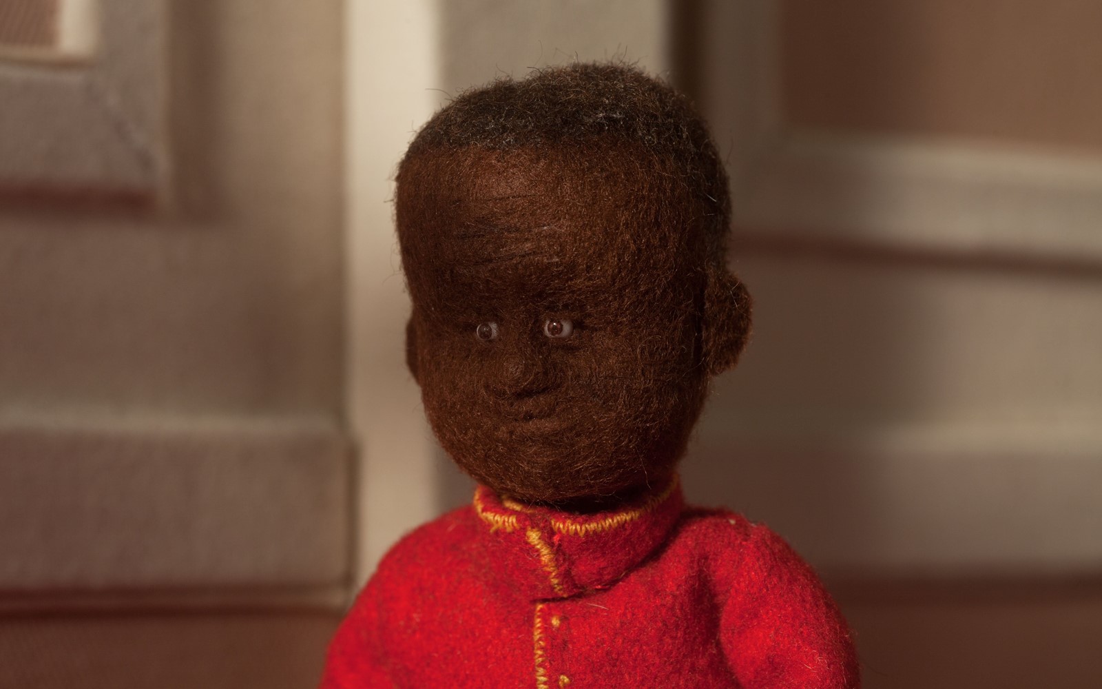 The animation is minimal, but the cloth faces of the puppets seem to change expression as light plays over them, creating an unsettling vitality. The overscaled hallways and caverns increase the sense of alienation: The characters are as vapid as the hotel that symbolizes the colonial regime.
