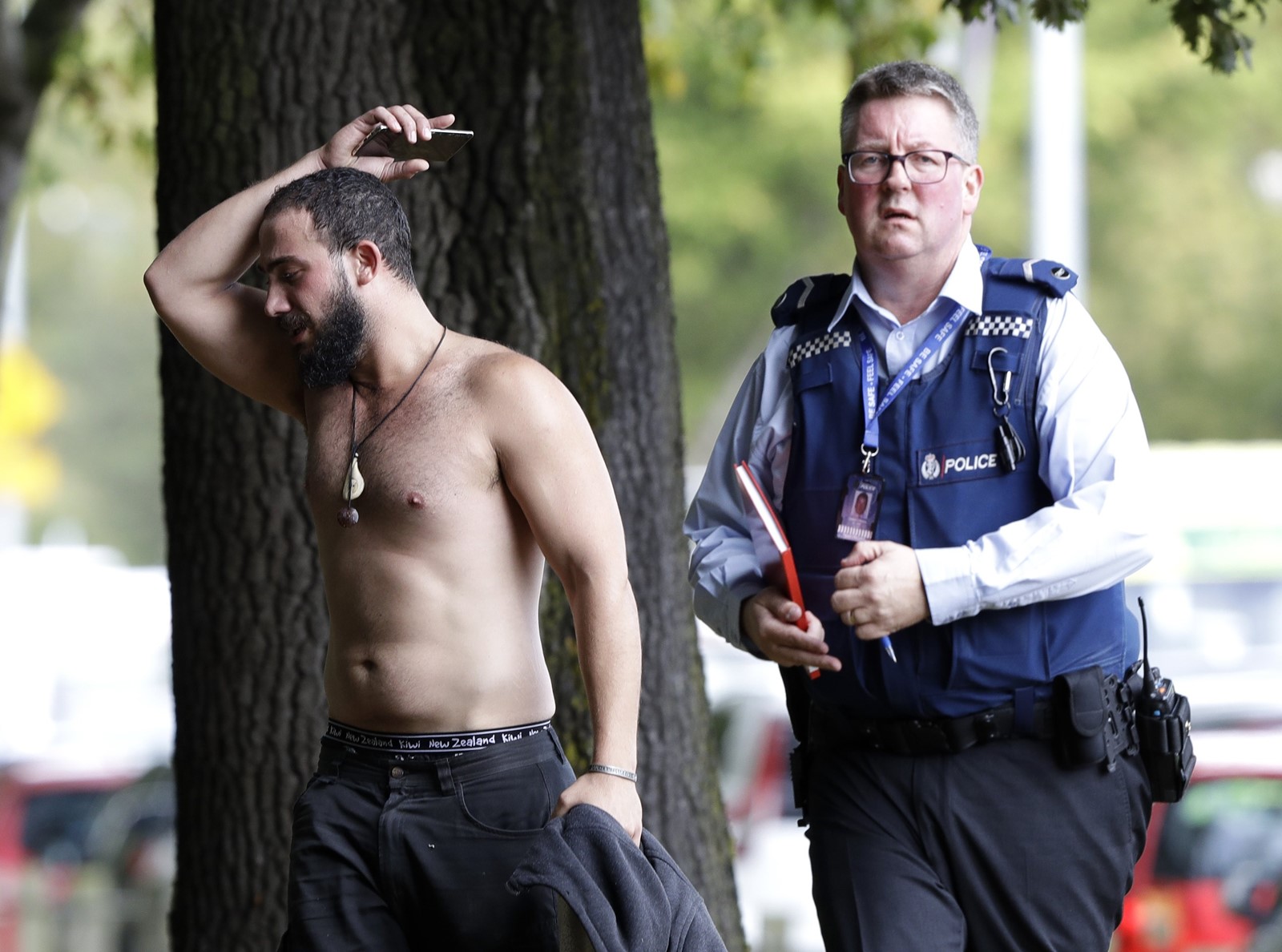 At the Al Noor Mosque, witness Len Peneha said he saw a man dressed in black and wearing a helmet with some kind of device on top enter the house of worship and then heard dozens of shots, followed by people running out in terror.
