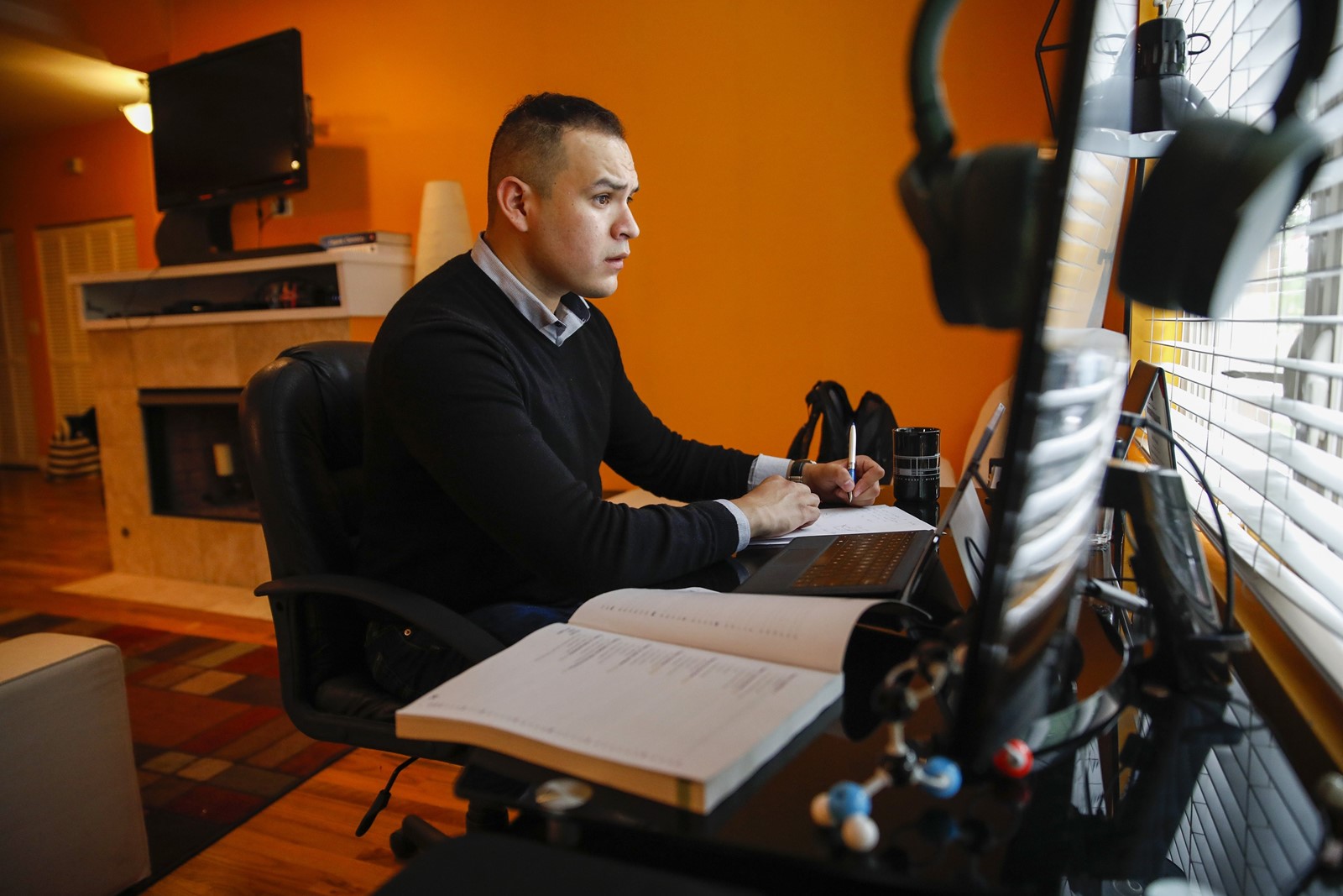Villagomez, who lives with two roommates in Chicago’s Humboldt Park neighborhood, is the first in his family to go to college, and he feels anxious as he contemplates his next step. He was born in Chicago but raised in Mexico, where he spent long days juggling school and helping run the family’s produce store. When he realized his family couldn’t afford to send him to college, he saved enough money for a bus ticket and, at 16, returned to Chicago to live with relatives and aspire for more.