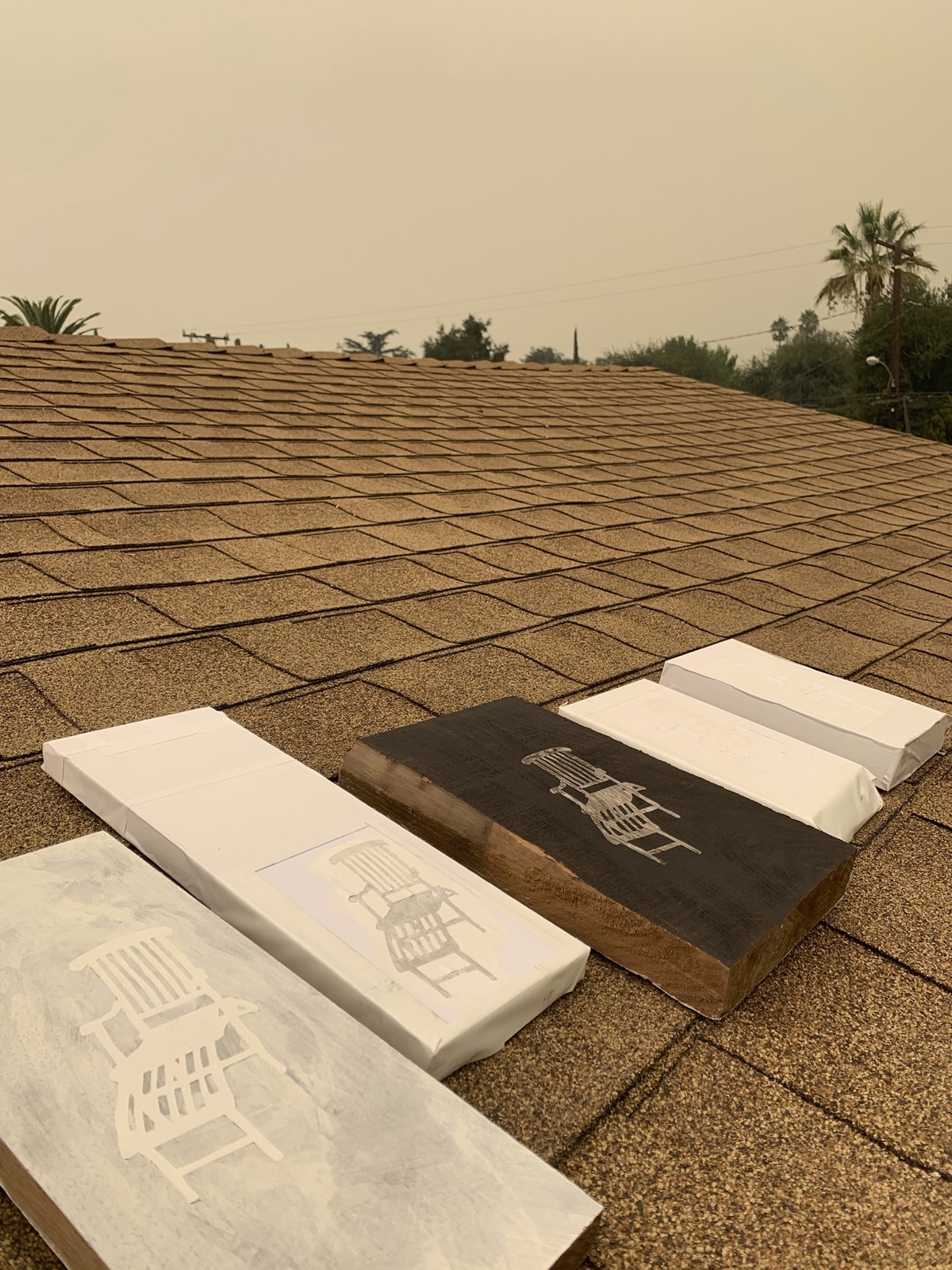 That was in early September, and the artist planned to let the smoke, ash and particulates in the heavy air fall on that wood, collecting over time and forming an image when the stencil was removed.