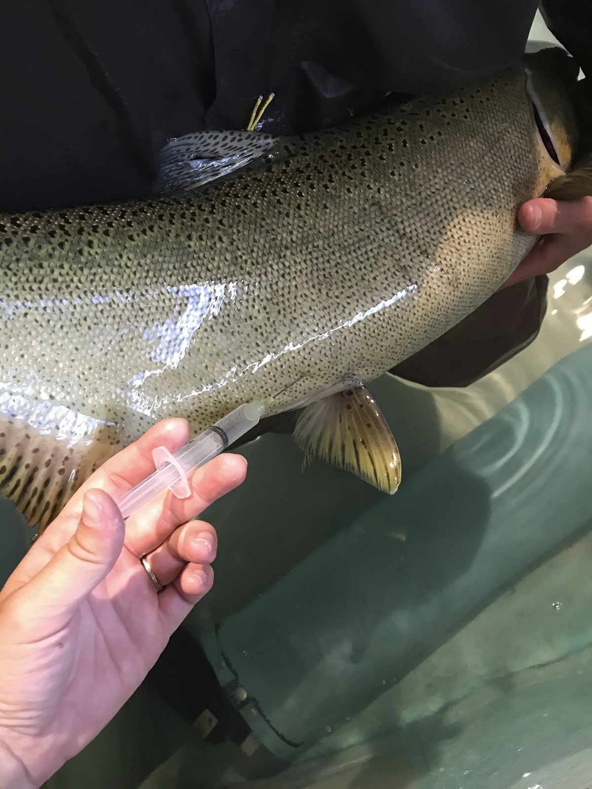 Johnson, who came to the project after the deficiency had been identified, then worked to take the experiment one step further. She and her team pulled 60 adult winter run female salmon and treated half with thiamine, the other half with a placebo. The eggs and fry from the treated females thrived. About half of those from the placebo group didn’t.