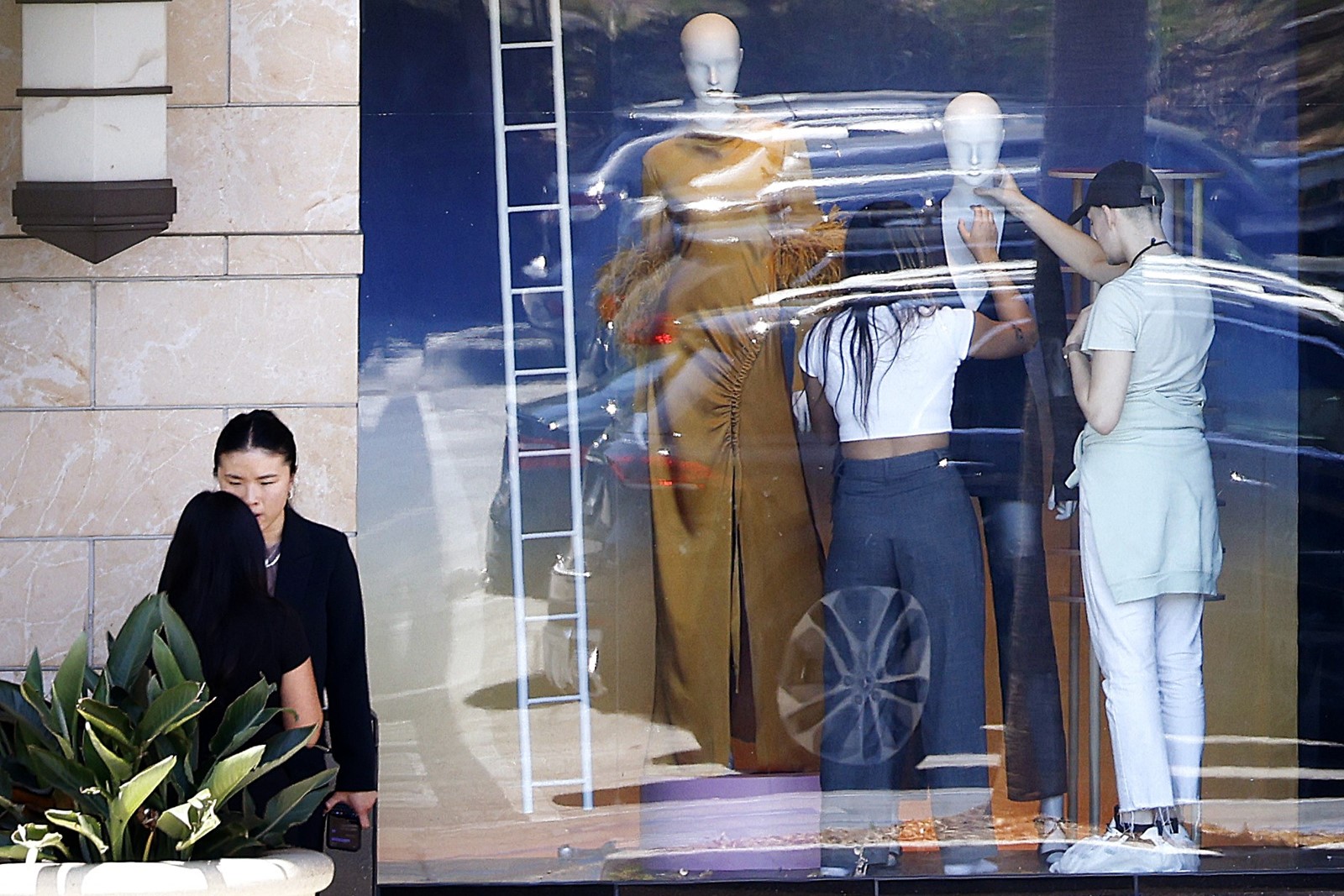 Aram Kaloustian grabbed a cup of coffee Tuesday morning at the Americana, a few hundred feet from the Yves Saint Laurent store where workers repaired the entrance to the shop that thieves ransacked last week.