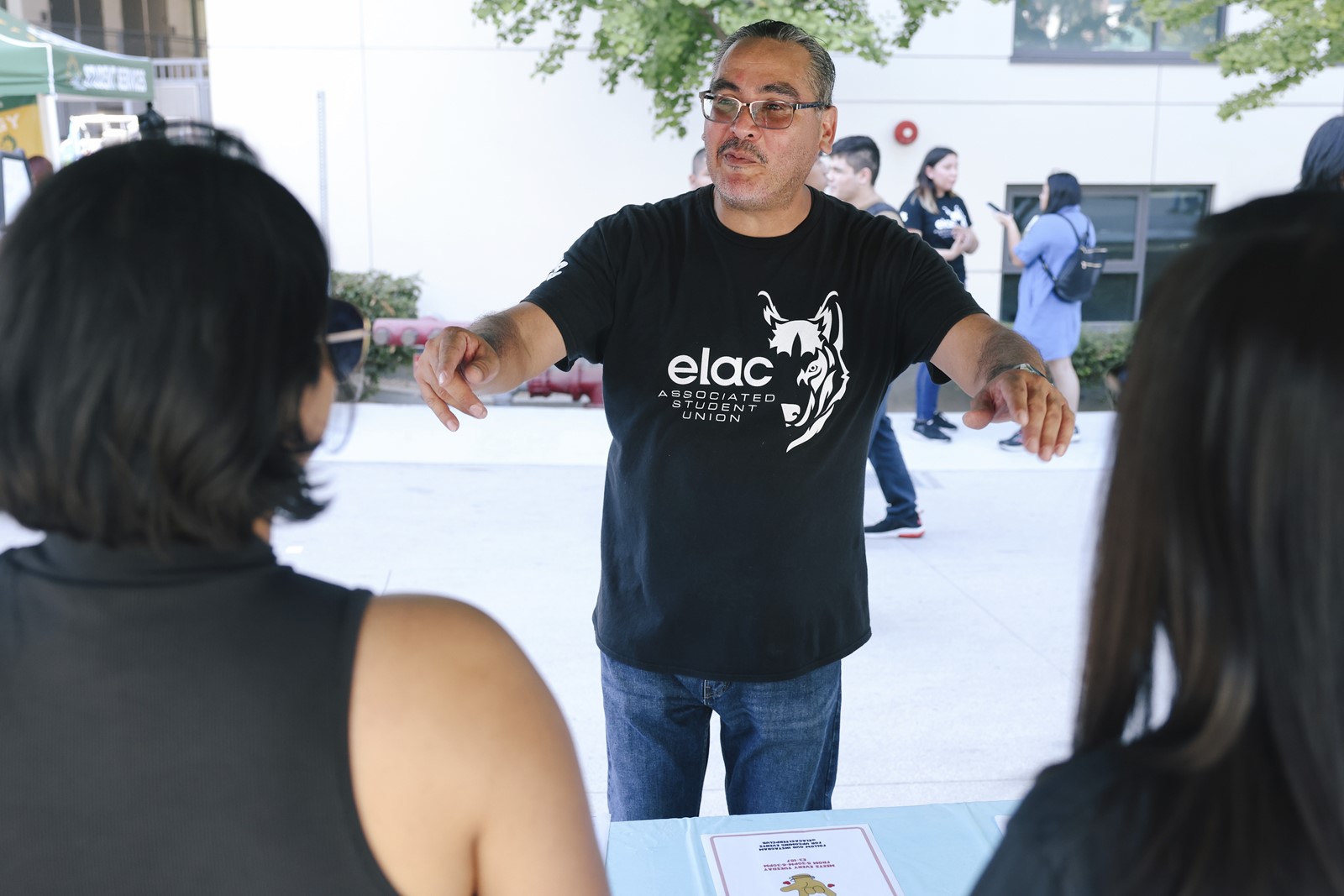 During an enrollment fair in August at L.A. City College, 32-year-old Byron Argueta signed up for four classes — two are online and two are in person. Logging on from home saves gas money. And he doesn’t have to worry about finding after-school care for his 8-year-old son.