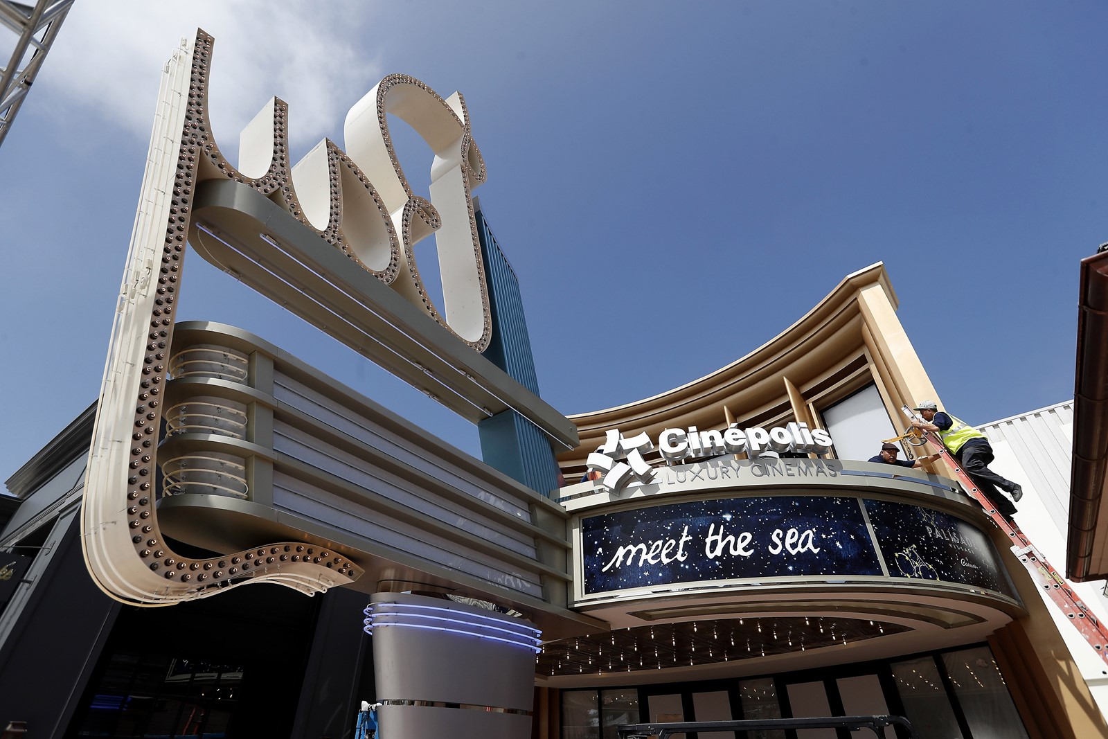The workers washed storefront windows, set down sod in the village’s park area and laid brick along its walkways in preparation for Saturday’s opening of the $200-million complex in the tony seaside community.