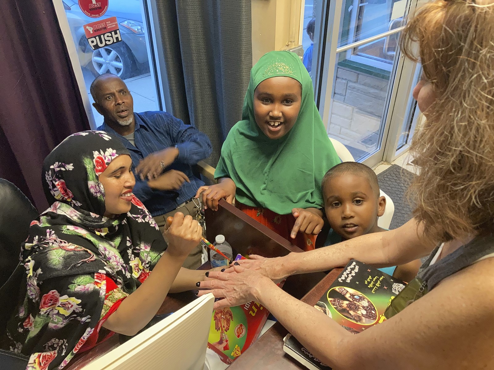 Foos had henna designs on her hands which I admired. She said something to Mushtak in Somali. Before I knew what was happening, Mushtak had brought henna and Foos was globbing black gelatinous dollops on my fingernails. She said I needed to wait a half-hour before washing it off. In the meantime, Foos shot Snapchat videos. A woman in a town of 2,500 made fish lips and batted her eyes at her 19,000 followers.