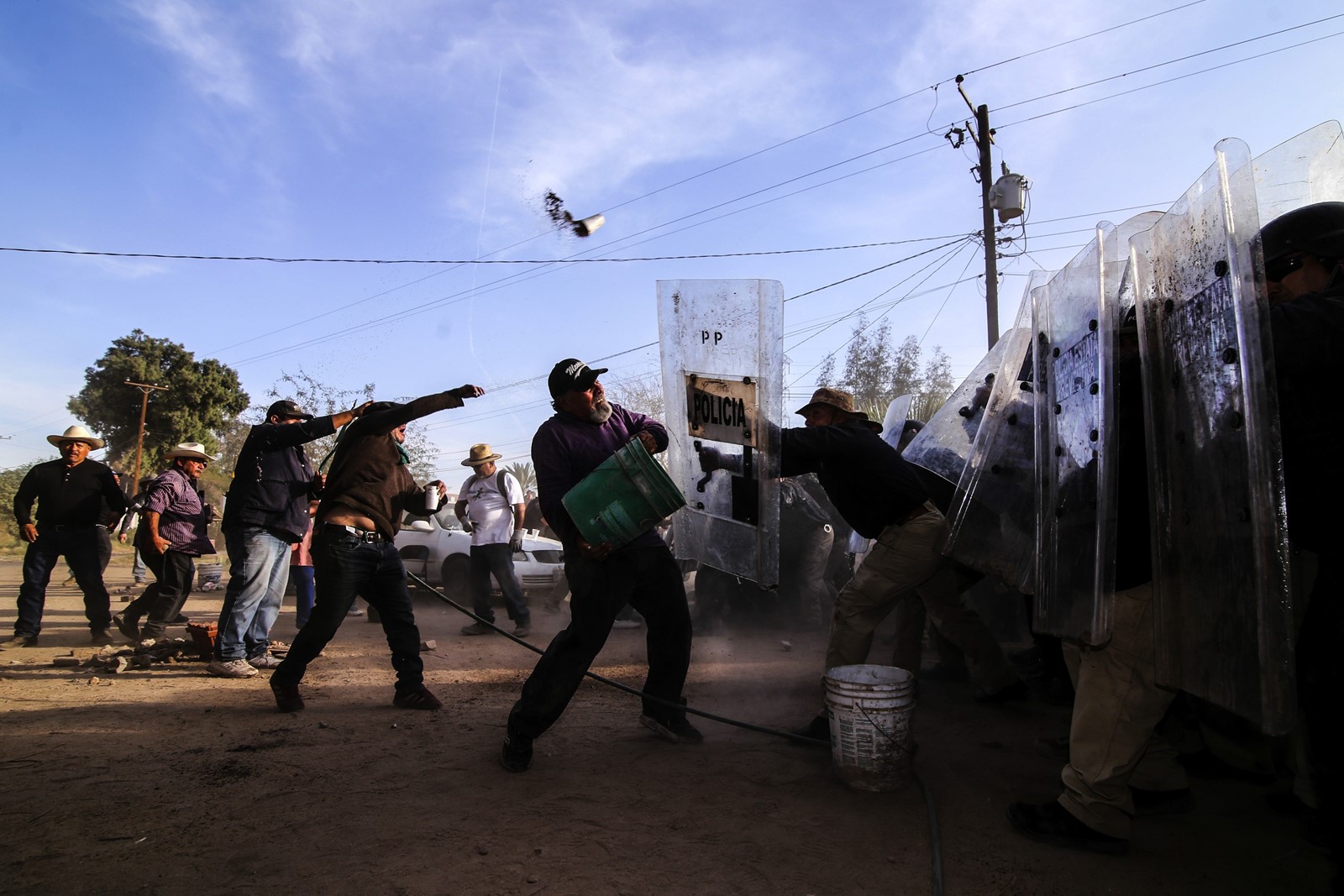 Tension flared last month as several dozen protesters blocked workers from digging a trench for an aqueduct to the facility. They threw rocks and dirt at state and municipal police who moved in on the crowd, and one protester drove a vehicle into a line of officers, who were not injured. The police, protected with riot shields but unarmed, also threw rocks at the crowd, according to journalists covering the event.