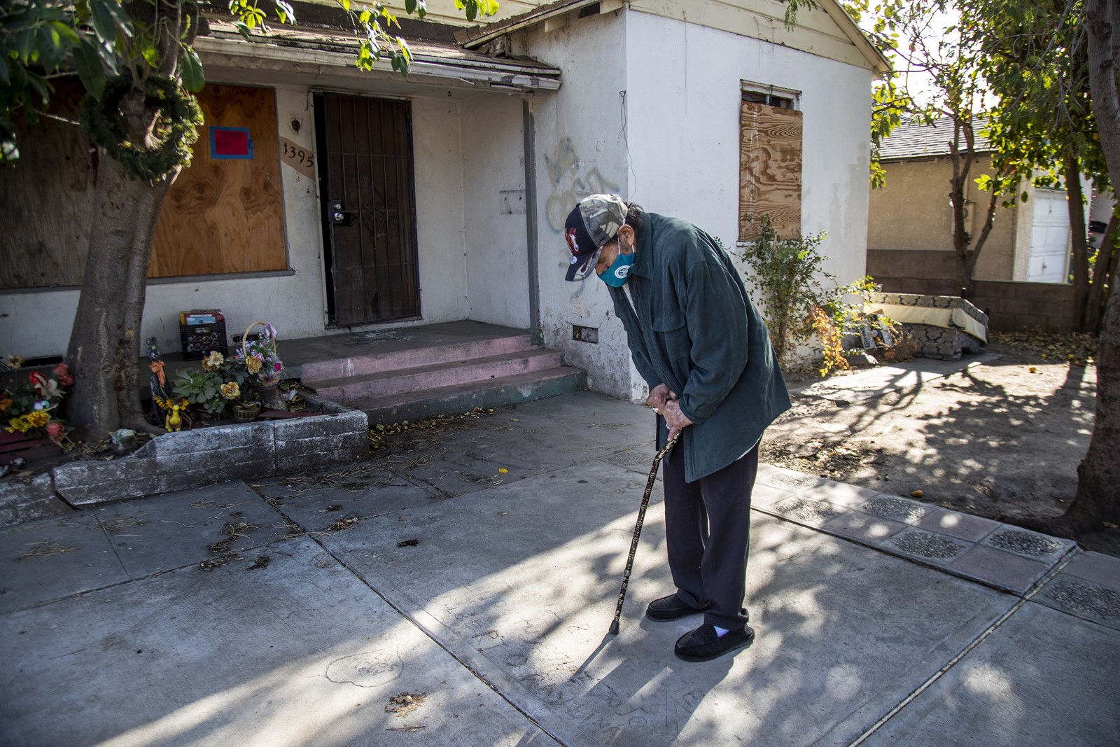 Gutierrez, 77, leaned on his cane, lifted himself from his chair and walked gingerly through the front yard to the sidewalk. He pointed out the paving work he had done decades earlier, when he was young and healthy, before a work accident left him disabled with no income other than disability insurance.