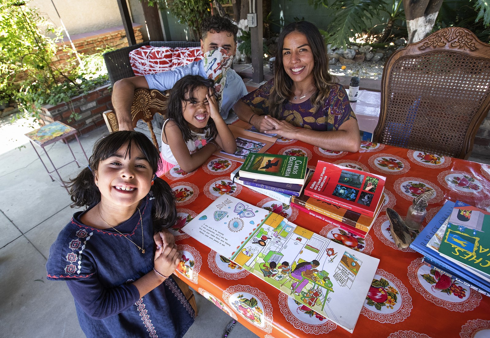 When the closures began in March, Rhea Nandi Stewart and her family revamped their Long Beach backyard and added a sofa set to create a space for socially distanced visits and group work for their high school-aged son and daughter. She opened her home to three other teenagers — neighbors and close friends of her children — whose parents have essential jobs during the day.