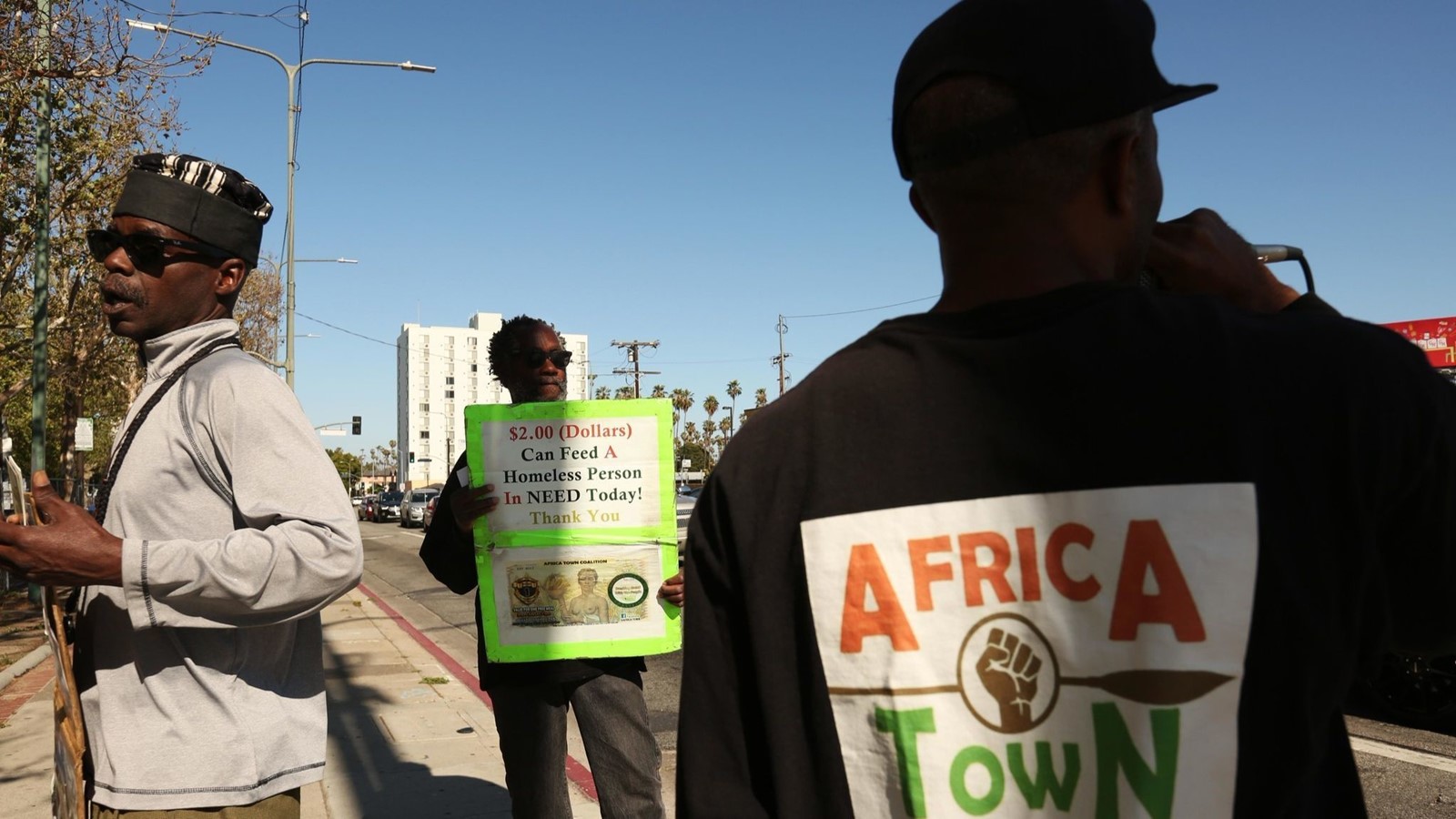 They were regulars in the area, chanting black empowerment slogans and soliciting donations for food and school supply giveaways. Primarily middle-aged men, they belonged to the generation that came of age in Los Angeles during the collective ire of 1992, with the political angst but without the organizational prowess or scale of the Black Lives Matter movement.
